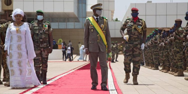 هاجم مسلحان أحدهما يحمل سكينا، الرئيس المالي المؤقت عاصمي غويتا، خلال صلاة عيد الأضحى في المسجد الكبير بالعاصمة باماكو، الثلاثاء.