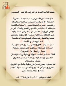 البابا تواضروس يهنىء الرئيس السيسى