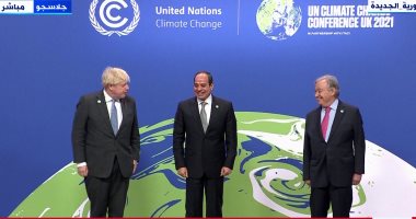 التقط الرئيس عبد الفتاح السيسى، صورة تذكارية مع بوريس جونسون رئيس الوزراء البريطانى، والأمين العام للأمم المتحدة أنطونيو جوتيريش، عقب وصوله إلى مقر انعقاد قمة المناخ فى جلاسجو.