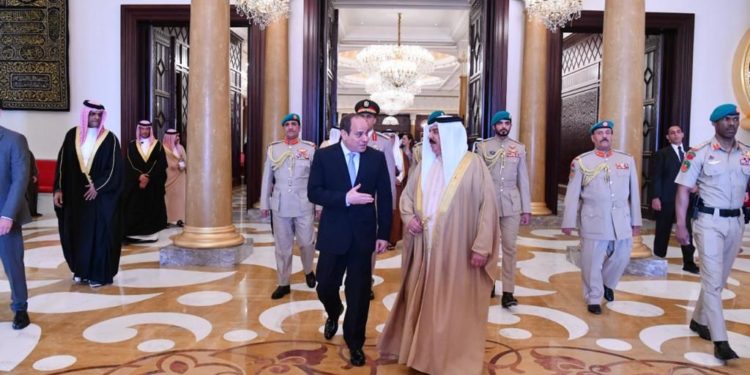 نشر السفير بسام راضي المتحدث الرسمي باسم رئاسة الجمهورية، صور لقاء الرئيس عبدالفتاح السيسي، اليوم الأربعاء، بقصر صخير في العاصمة البحرينية المنامة، مع جلالة الملك حمد بن عيسى آل خليفة، ملك المملكة البحرينية.