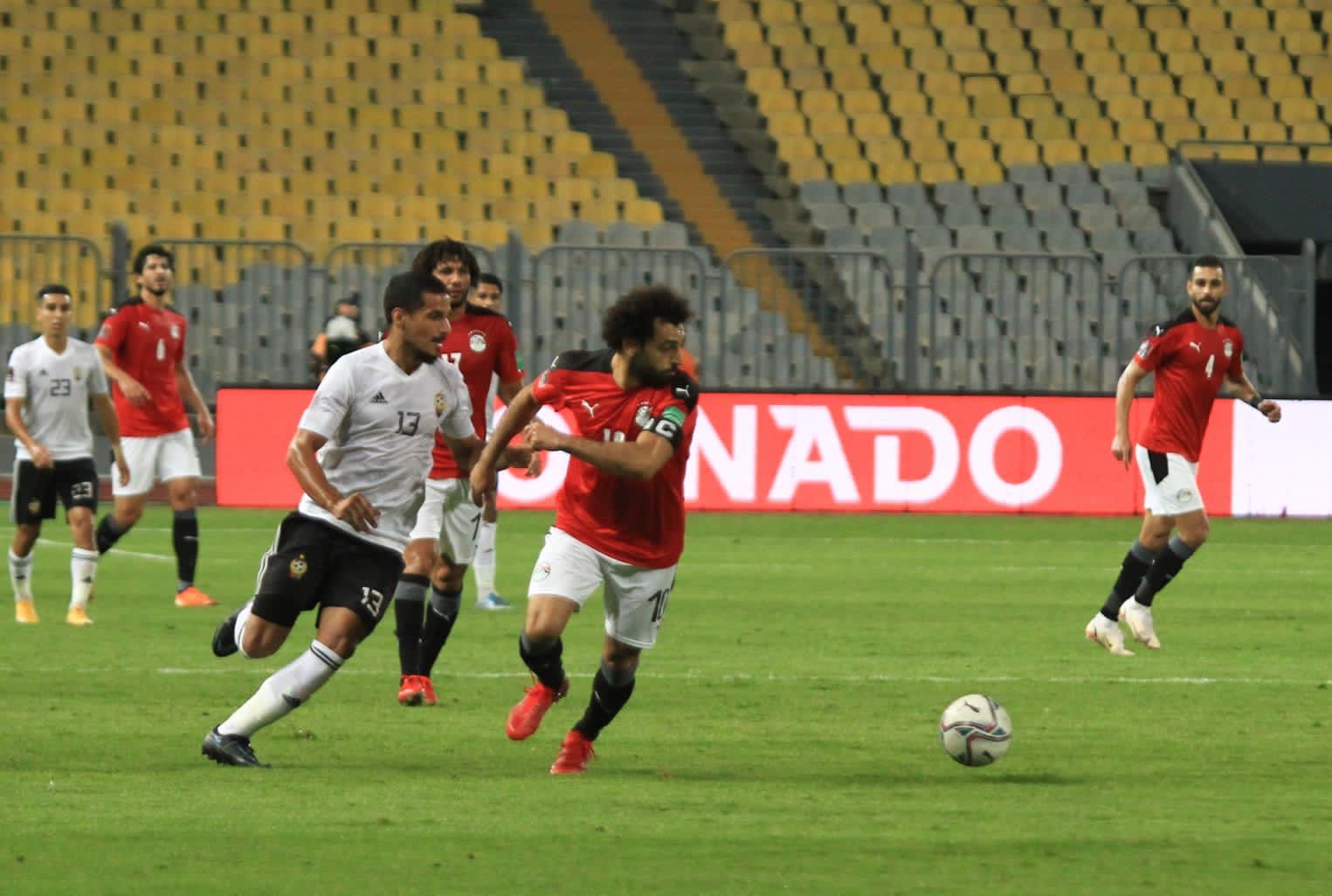 أدى المنتخب الوطني صباح اليوم تدريبا تنشيطيا بقاعة الاجتماعات المخصصة للفريق بمقر الإقامة بمدينة بنغازي الليبية، وذلك قبل ساعات من مباراته أمام المنتخب الليبي التي ستنطلق في التاسعة مساءً بتوقيت البلدين بملعب شهداء بنينا ببنغازي ضمن الجولة الرابعة لتصفيات المجموعة الافريقية السادسة لكأس العالم التي يتصدرها المنتخب المصري برصيد 7 نقاط بعد فوزه على نظيره الليبي 1-0 ضمن الجولة الثالثة ليتجمد رصيد منتخب ليبيا عند 6 نقاط.