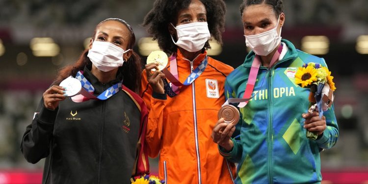 توجت الهولندية سيفان حسن بالميدالية الذهبية لسباق 10 آلاف متر عدو للسيدات ضمن منافسات ألعاب القوى في أولمبياد طوكيو 2020.
