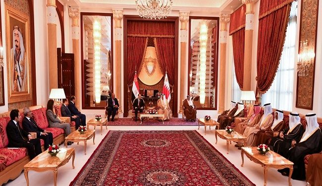 وصرح السفير بسام راضي المتحدث الرسمي باسم رئاسة الجمهورية بأن الملك حمد بن عيسى رحب بأخيه الرئيس ضيفاً عزيزاً على البحرين، معرباً عن اعتزاز الحكومة والشعب البحريني بما يجمعهما بمصر وشعبها من أواصر تاريخية وطيدة وعلاقات وثيقة في مختلف المجالات، ومؤكداً التقدير البالغ للدور الإستراتيجي والمحوري الذي تقوم به مصر تحت قيادة الرئيس في حماية الأمن القومي العربي والدفاع عن قضايا الأمة العربية.