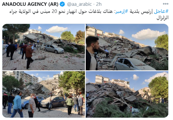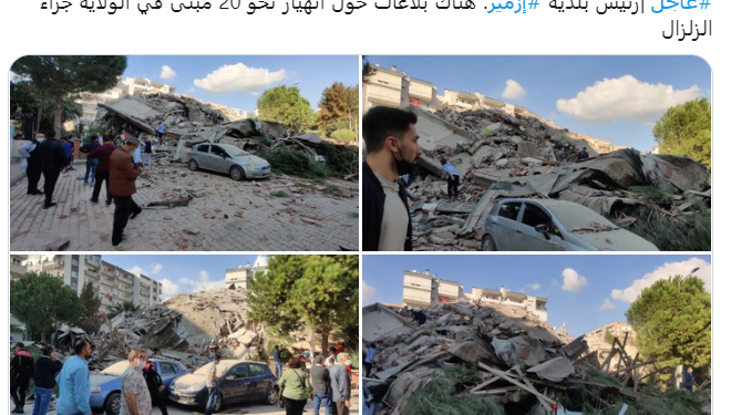 في غضون ذلك، أعلن رئيس بلدية إزمير تلقى بلاغات حول انهيار نحو 20 مبنى في الولاية جراء الزلزال.