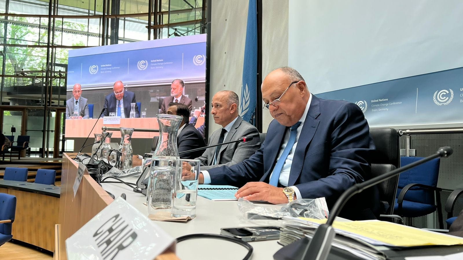 ويواصل وزير الخارجية لقاءاته المكثفة في مدينة بون حيث اجتمع فى وقت سابق اليوم مع مجموعة المفاوضين الأفارقة لتغير المناخ وكذلك مع مجموعة الـ 77 والصين.