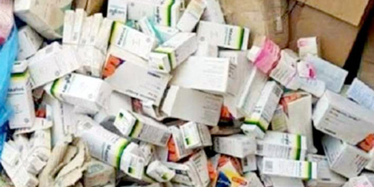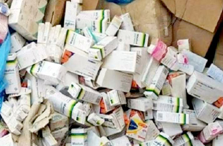 وعُثر بداخل المخزن على ( كمية من الأدوية والعقاقير والمنشطات “جميعها مجهولة المصدر وغير مصحوبة بأية مستندات تدل على مصدرها”).