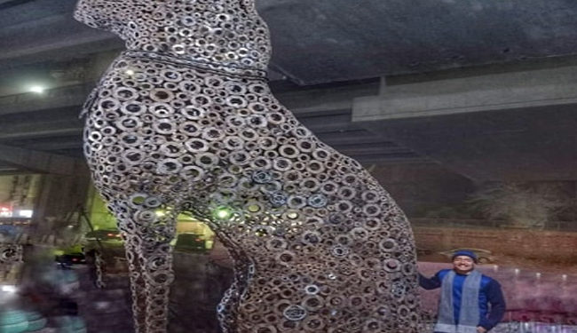 فنان مصري يصمم أكبر تمثال للإلهة الفرعونية “باستت” من الخردة