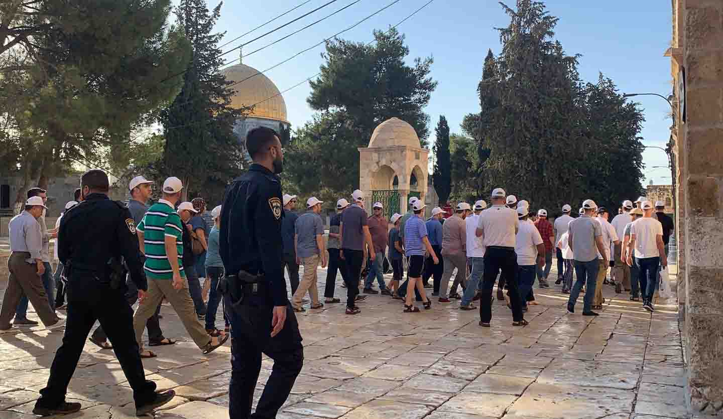 اقتحم مُستوطنون إسرائيليون، اليوم الثلاثاء، الحرم القدسي الشريف، بحماية من شرطة الاحتلال، فيما تم اعتقال 9 فلسطينيين من الضفة الغربية، وإبعاد أحد أبناء البلدة القديمة بالقدس المُحتلة عنها لمدة أسبوعين.