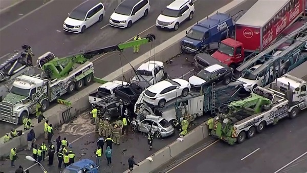 وأسفر الحادث عن مقتل 5 أشخاص على الأقل ونقل 36 آخرين إلى المستشفيات، وتم إجلاء معظم الأشخاص الذين طالهم الحادث من المكان، لكن العديد من السيارات المتضررة لا تزال على الطريق، وقد تستغرق إزالتها عدة أيام.