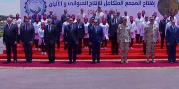 حرص الرئيس عبد الفتاح السيسي، على مشاركة العاملين فى مجمع الإنتاج الحيواني والألبان بمدينة السادات بمحافظة المنوفية، صورة تذكارية. جاء...
